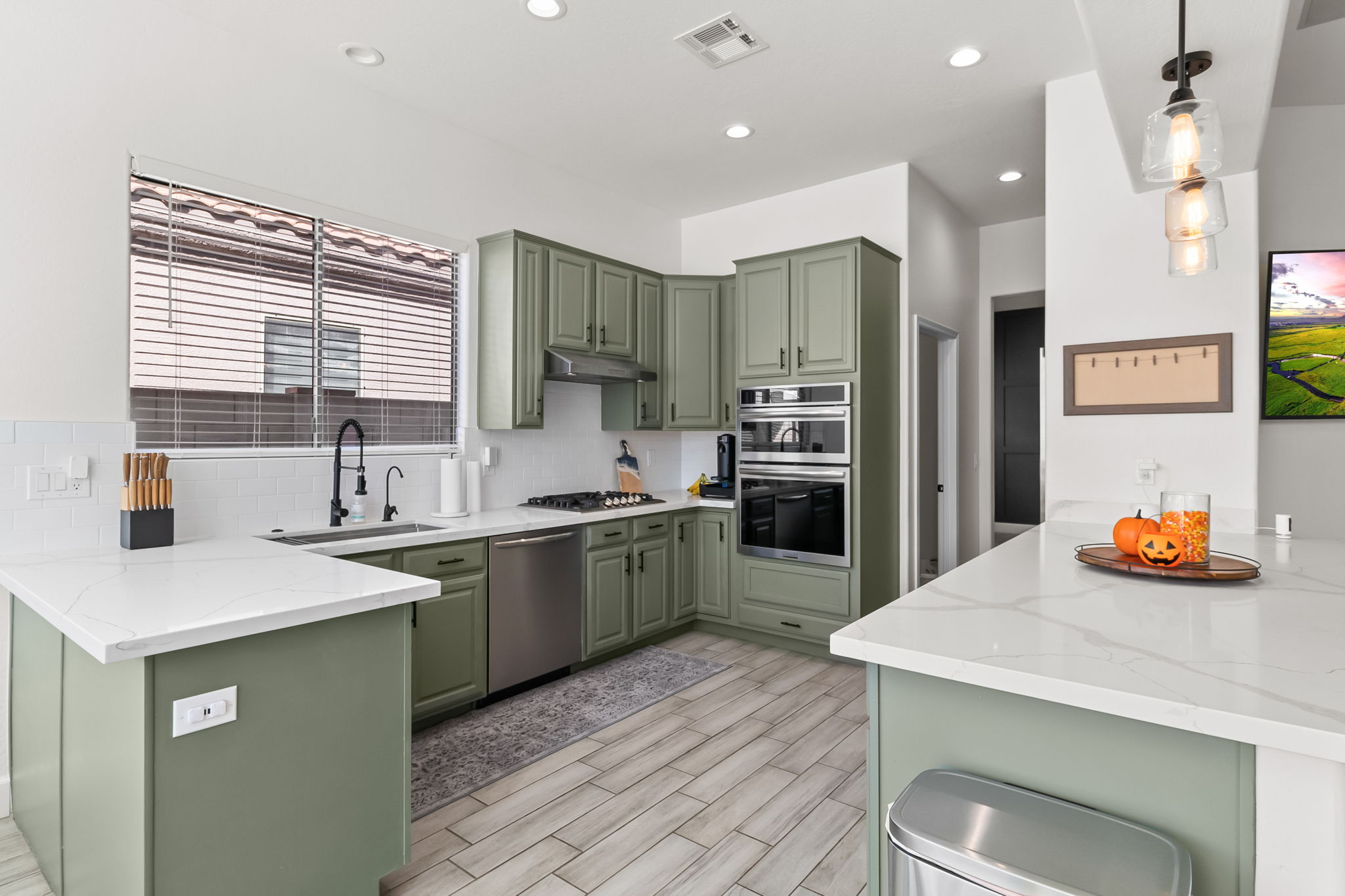 This rare, one-story gem sits on a corner lot & backs directly to a serene mountain preserve, providing both views/sunsets & total PRIVACY! Step inside to find a bright, open-concept great room. Newly updated kitchen showcases modern stainless steel appliances, gas cooktop, charming farmhouse sink, upgraded faucet, pendant lighting & more! Primary BR is spacious with fully remodeled bathroom and stand alone soaking tub, quartz double vanity. Other features inc: Water Softener, R/O, Garage Floor Epoxy, professional paint throughout, replaced outlets, door hardware, ceiling fans, Ring security, yearly A/C tune ups, replaced Garage Rollers, New Thermostat, surround sound, etc. Don't miss this opportunity to own a truly unique property w/peaceful setting, modern conveniences at a great value